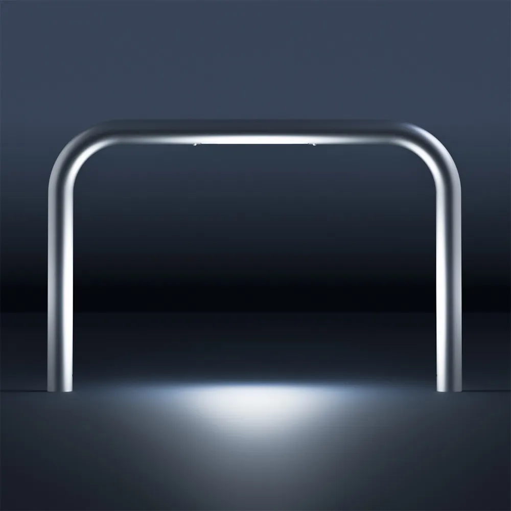 既存のステンレスアーチに、独自のライトユニットを組み込んだ仕様が新登場。やわらかなライン照明が夜の公園や施設エントランス、商業空間に温かみを添え、景観と調和しながら夜間の誘導性と演出効果を向上させます。